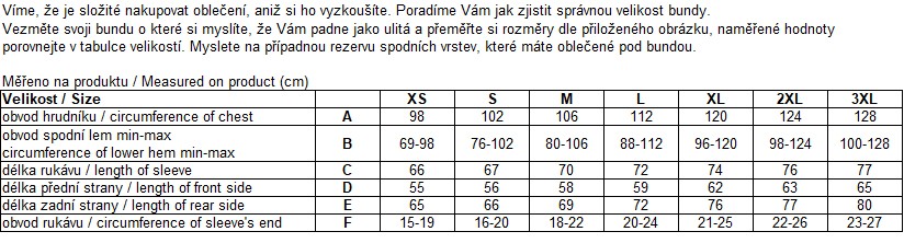 Tabulka velikostí: