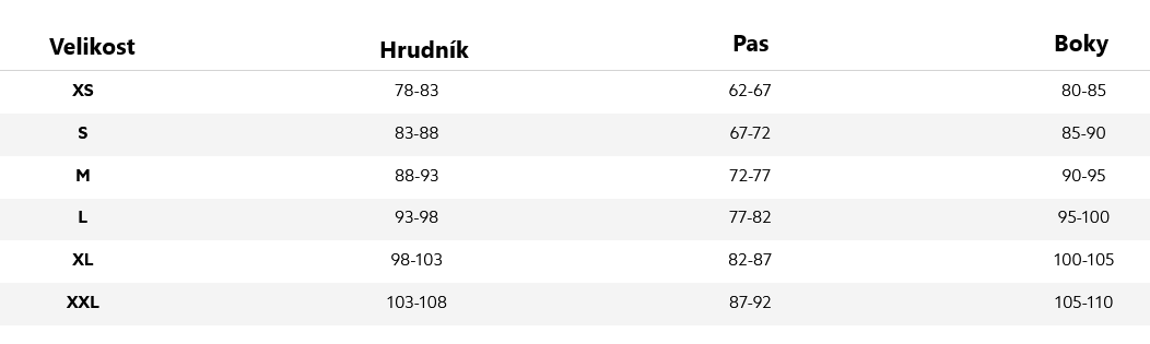- Dostupné velikosti: XS - 2XL