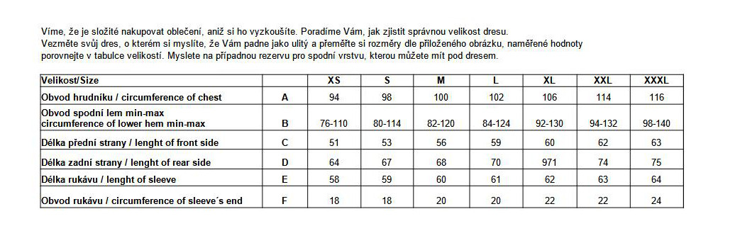 - Dostupné velikosti: XS-XXL
